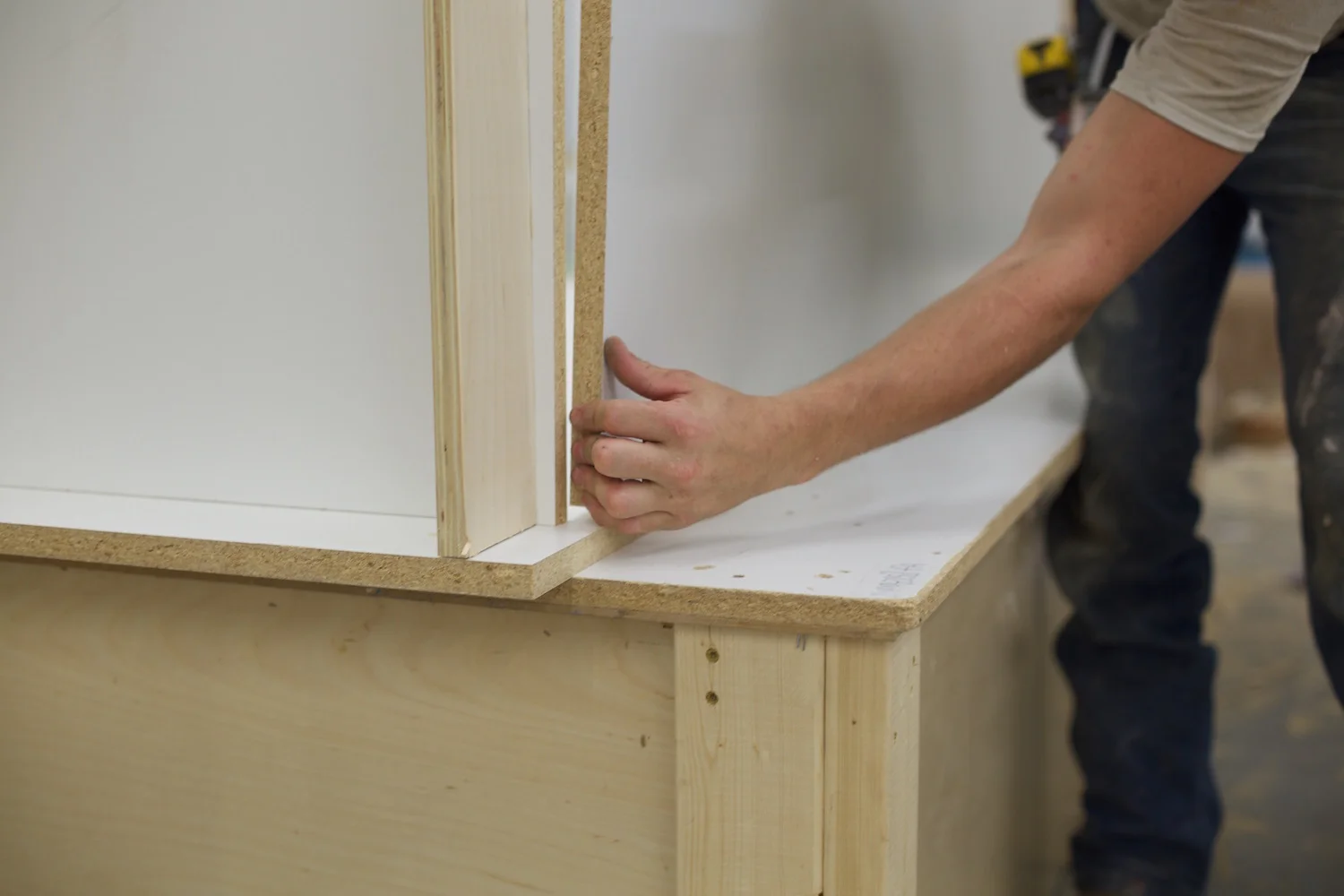 Scrap the tools, the storage of assembled product, and added hours of specialized labor. As the expert in Lockdowel, we offer a system to build cabinets quickly and intuitively directly on site, in unit. Lock, slide, assembled.