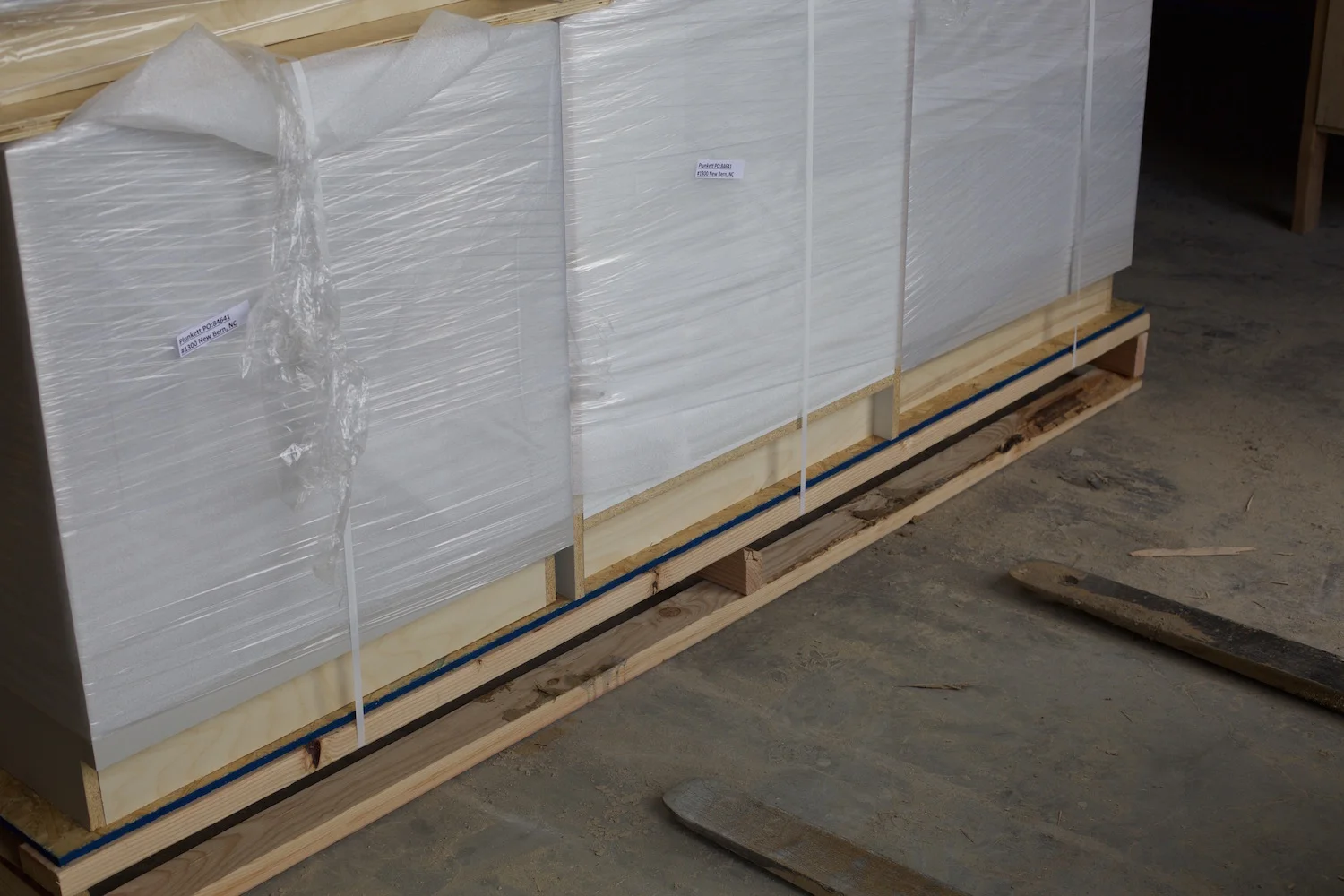 Say goodbye to piles of parts and long days of sorting. Our products are uniquely delivered fully kitted and packaged by cabinet and by unit. All the parts for one cabinet are flat packed, wrapped, labeled, and ready for quick assembly.